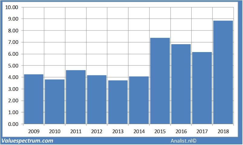 De meeste analisten gaan voor 2018 uit van een nettowinst van 336 miljoen euro. Over dit jaar wordt door het gros van de analisten, zoals gepolst door persbureau Thomson Reuters, een winst per aandeel van 2,7 euro verwacht. Op basis hiervan komt de koerswinstverhouding op 13,09 uit.