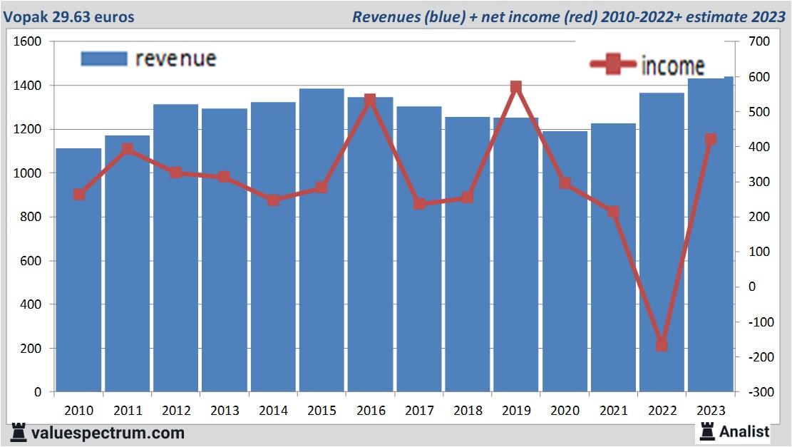 De analisten rekenen voor 2023 op een nettowinst van 422 miljoen euro. Over dit jaar houdt het bedrijf volgens de analisten een winst per aandeel van 3.36 euro over. De koerswinstverhouding komt zodoende op 8.82 te liggen.