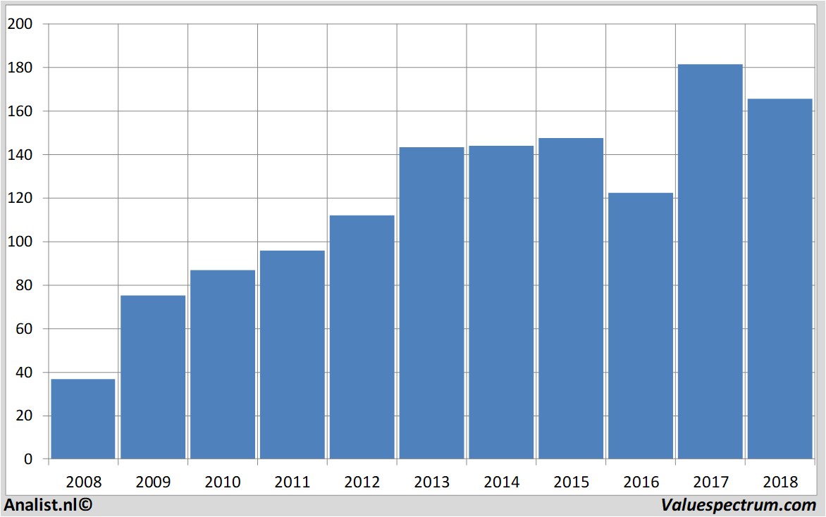 Over het lopende jaar ligt de consensus van de omzet op 110,79 miljard NOK. Dit is beperkt minder dan de omzet over 2017 toen de omzet 112,07 miljard NOK bedroeg.