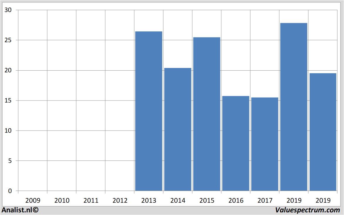 De meeste analisten gaan voor 2019 uit van een nettowinst van 311 miljoen euro. Over dit jaar komt het bedrijf volgens het gros van de analisten uit op een winst per aandeel van 1,48 euro. Op basis hiervan komt de koerswinstverhouding op 13,2 te liggen.