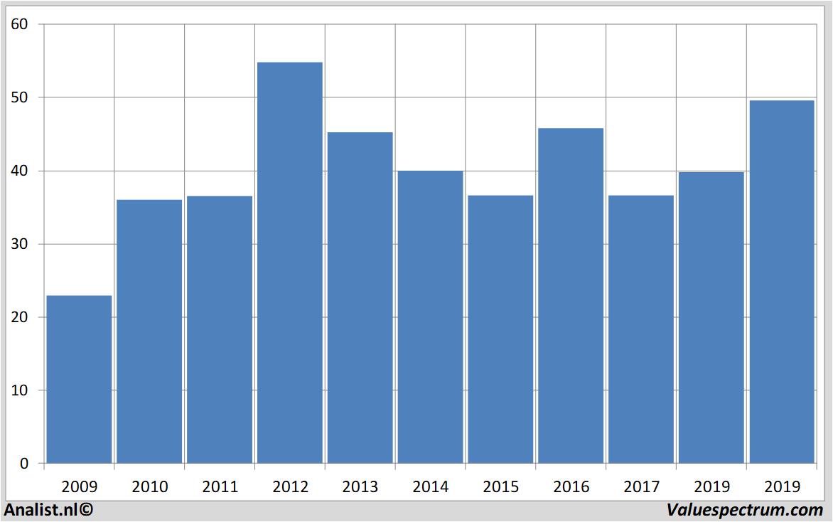 De analisten gaan voor 2019 uit van een nettowinst van 337 miljoen euro. Voor dit jaar ligt de consensus van het resultaat per aandeel op een winst van 2,88 euro. De koerswinstverhouding komt zodoende uit op 17,21.