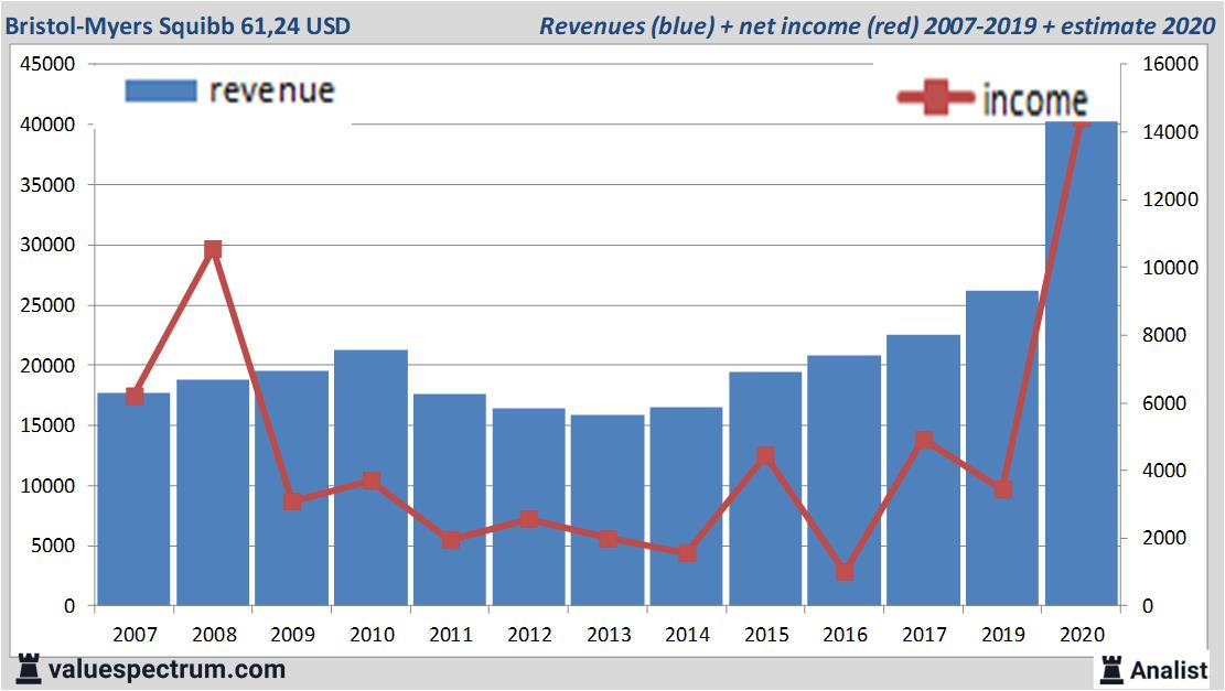 Per aandeel verwachten de analisten een dividend van 1,8 dollar. Het dividendrendement van Bristol-Myers Squibb ligt hiermee op 2,94 procent. Het gemiddelde dividendrendement van de farmaciebedrijven ligt op een magere 0,21 procent.