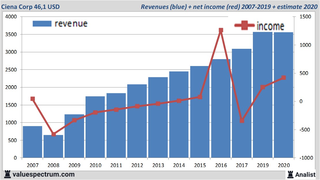 Klikt u hier voor dividend aandeel Ciena Corp. Het aandeel sloot donderdag op 46,1 dollar.