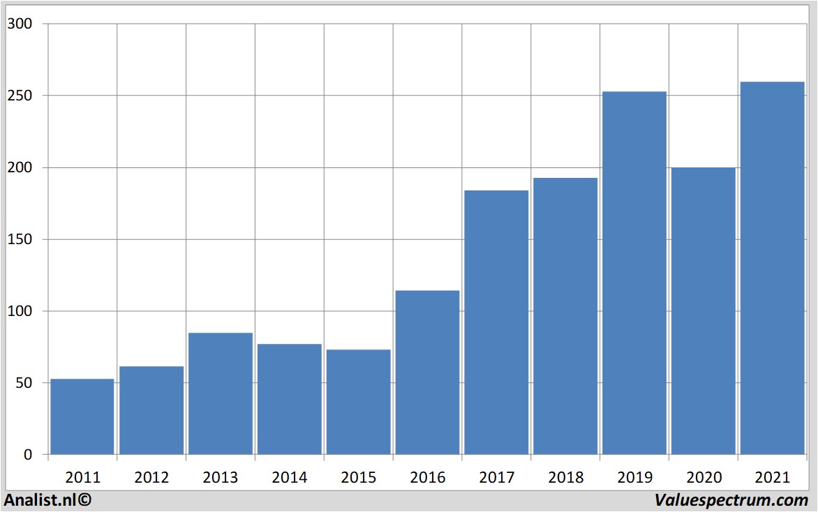 De analisten rekenen voor 2021 op een nettowinst van 1.45 miljard euro. Over dit jaar houdt het bedrijf volgens de analisten een winst per aandeel van 7.47 euro over. De koers-winst-verhouding ligt hiermee op 34.75.