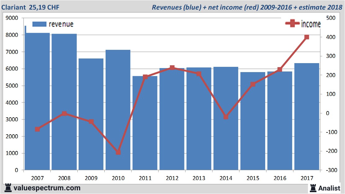 Morgen gaat Clariant haar resultaten over het afgelopen kwartaal naar buiten brengen. De omzet van Clariant over dit jaar komt uit op 6,33 miljard CHF. Zo blijkt uit gemiddelde analistenverwachting. Dit is licht meer dan de omzet over 2016 toen de omzet 5,85 miljard CHF bedroeg.